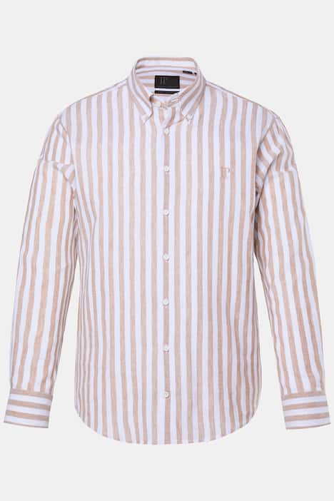 Chemise JP 1880 en lin mélangé à rayures, manches longues et col à pointes boutonnées, coupe Modern Fit - jusqu'au 8 XL